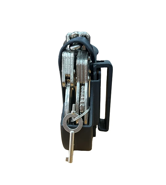 Porta esposas ultraliviano fabricado en polímero técnico de alto impacto, diseñado para operadores y guardias de seguridad que requieren extracción veloz, retención segura, sin puntos de presión en el cinturón de servicio. Compatible con esposas metálicas de bisagra o cadena más comunes en Chile (Smith & Wesson®, Hiatt®, Safariland®, etc.).